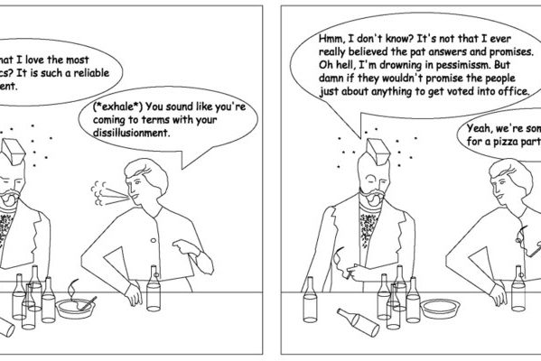 A comic I’ll call, “Pizza Party”, from 2008. Recently found on a old photo sharing site. Created shortly before the 2008 recession.